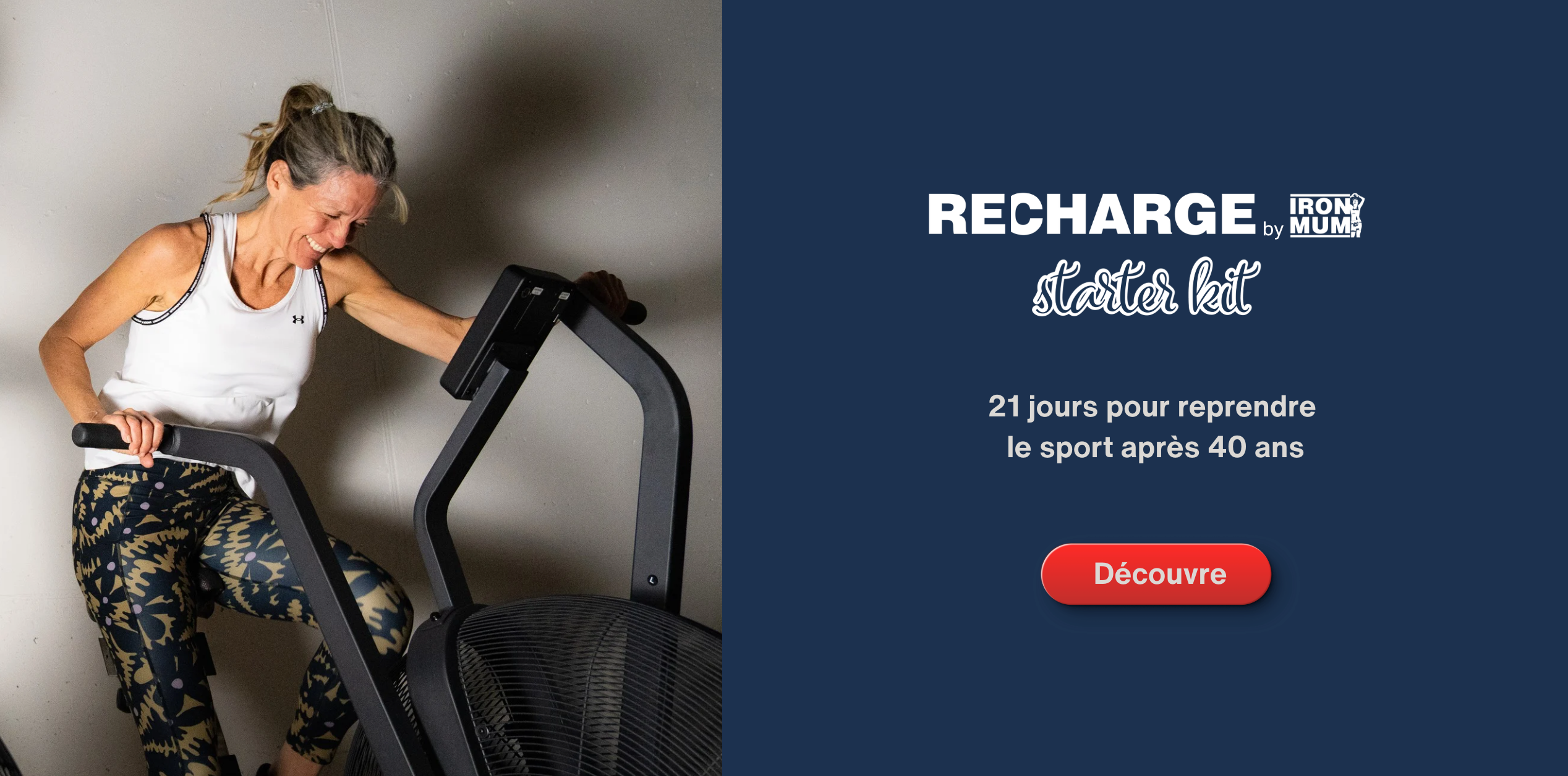 La méthode RECHARGE est conçue pour accompagner les femmes de 40+ et 50+ avec un entraînement adapté, ciblé et efficace.