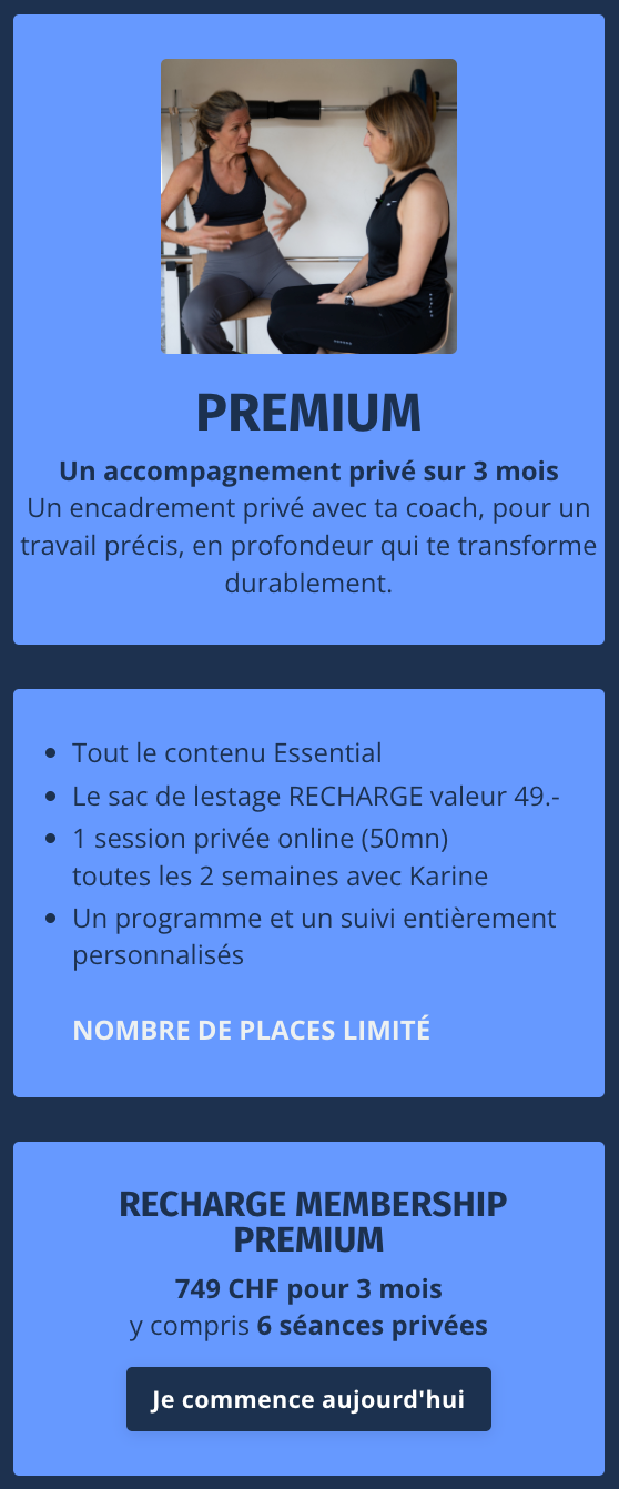 Le Membership RECHARGE, c’est l’abonnement qui te donne accès à une méthode ciblée